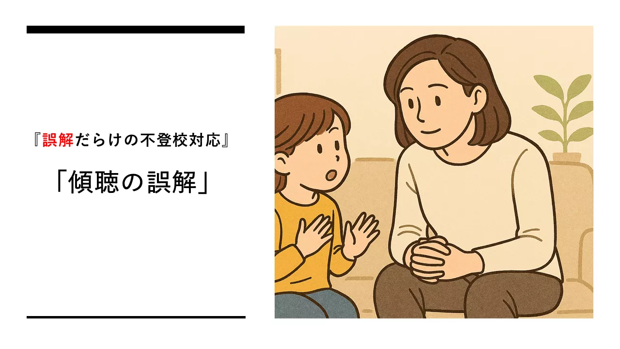 「子どもの話に耳を傾けましょう」は心理サポートの基本ですが、そのメッセージを単純に訴えすぎると弊害も生まれます。典型的なのは「子どもの話を否定せずに最後まで聴くことが傾聴である」という理解をし、親が子どもの話を聞くときに「我慢しながら・苦痛を感じながら聴く」という状態に陥らせてしまうことです。